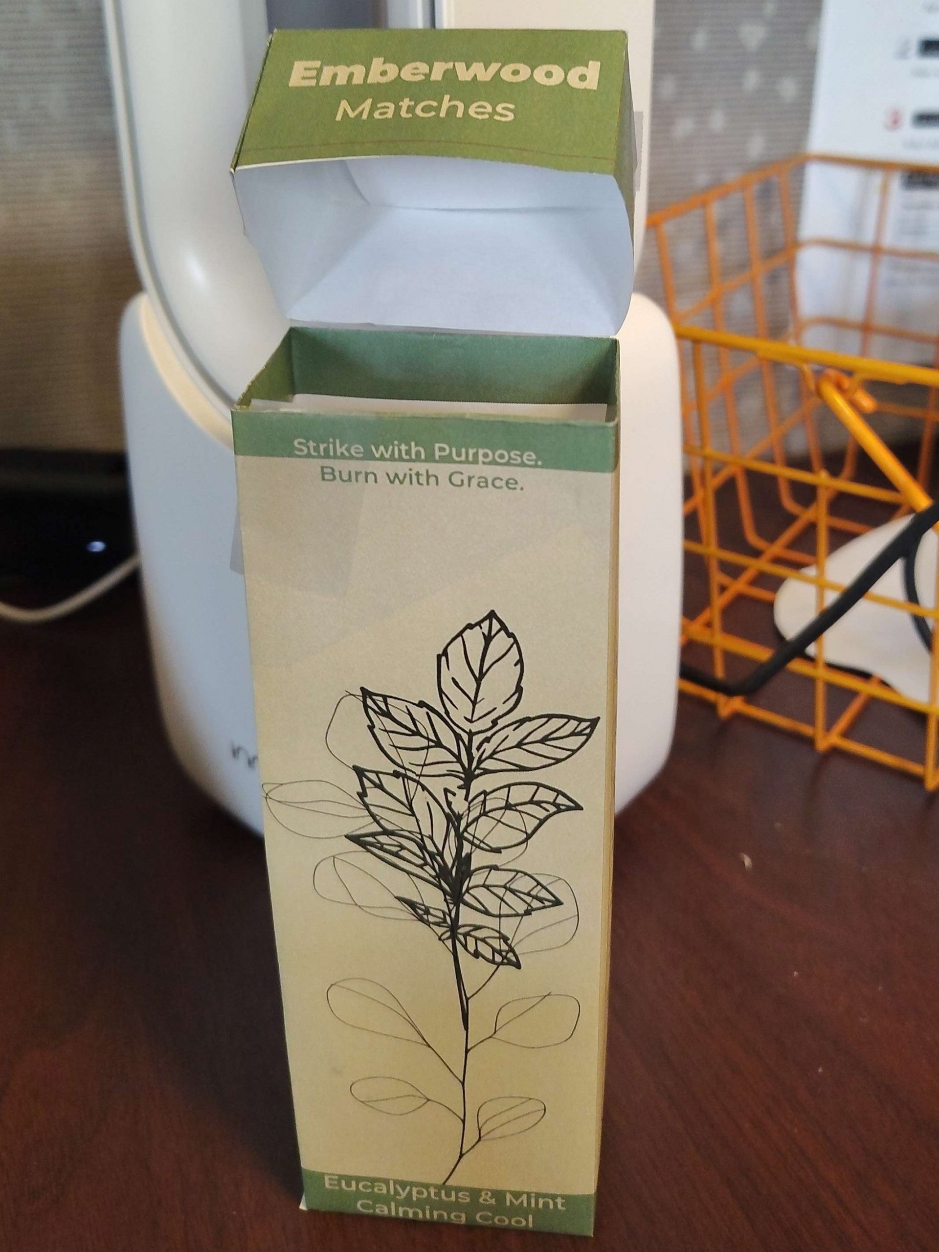 This project was born from a ChatGPT conversation. My ideas were to do something that would be goblin core or green witch aesthetic. I was thinking cottage in the woods, herb garden, mushrooms, wild things…and ChatGPT suggested to me the idea of making luxury matches. I ran with this idea, full tilt, because my next question to ChatGPT was “yikes, but what could we do about the sulfur smell from striking matches?” The AI suggested that we scent them – and the idea was born. I have a whole list of scents that I think would be amazing for a match to produce when struck.