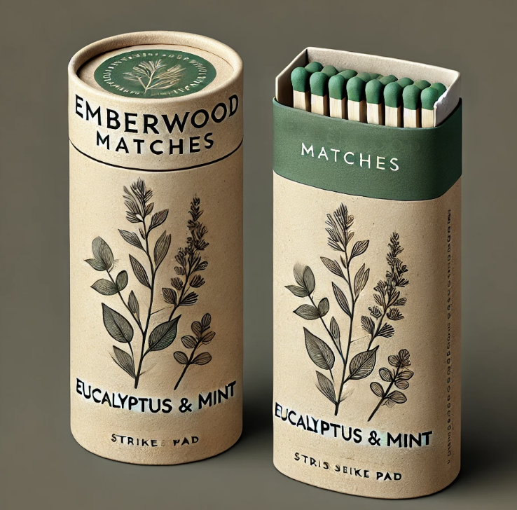These panels were a lot of fun to work with, I even added in a top and bottom panel to serve as strike areas for the matches. I enjoyed brainstorming the brand name, too, and I picked Emberwood because it speaks to me of fire and wild growing things, which is very brand appropriate for these matches.